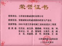 公司先后獲國(guó)家火炬計(jì)劃重點(diǎn)高新技術(shù)企業(yè)、江蘇省高新技術(shù)企業(yè),國(guó)家二級(jí)企業(yè), 江蘇省名牌產(chǎn)品企業(yè)、江蘇省著名商標(biāo)企業(yè)、省雙文明單位,江蘇省計(jì)量保證確認(rèn)單位、江蘇省AAA資信企業(yè)、江蘇省環(huán)境保護(hù)先進(jìn)企業(yè)、 江蘇省重合同守信用企業(yè)等稱號(hào)。“金象”牌減速機(jī),先后獲得了省部?jī)?yōu)產(chǎn)品,國(guó)家機(jī)械工業(yè)部科技進(jìn)步二等獎(jiǎng),機(jī)械工業(yè)部“可靠性考核特別推薦產(chǎn)品”,SJDCY結(jié)晶機(jī)專用減速機(jī)、邊緣傳動(dòng)磨機(jī)減速器 、蝸輪齒輪雙級(jí)減速器、PR模塊式減速器、立式磨機(jī)減速器和同軸式圓柱齒輪減速器等先后通過(guò)了省級(jí)鑒定,并分別獲得了 江蘇省和淮安市科技進(jìn)步獎(jiǎng)二等獎(jiǎng)和三等獎(jiǎng)。2002年3月通過(guò)ISO9001:2000質(zhì)量管理體系認(rèn)證。有自營(yíng)進(jìn)出口權(quán)。