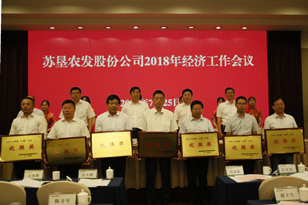 會議期間,蘇墾農發黃海分公司、蘇墾農發東辛分公司、蘇墾農發臨海分公司與大華種業集團等四家單位作了交流發言。會議隆重表彰了一批上半年工作業績突出的先進集體,授予7家分公司2018年度“三夏”工作優勝獎、6家分公司2018年度拓展基地“三夏”工作優勝獎、3家分公司2018年度小麥高產獎、10家分公司2018年度夏熟效益獎、4家分公司2018年度拓展基地夏熟效益獎。7月24日晚,還專題召開蘇墾農服工作推進會,就下一階段農業社會化服務體系建設工作進行了部署要求。
