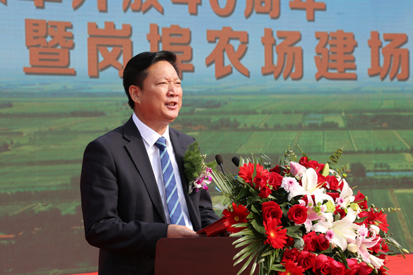 省農(nóng)墾集團(tuán)公司黨委副書記姚準(zhǔn)明在致辭中高度贊揚(yáng)了崗埠農(nóng)場60年歷程和輝煌的成就。他指出,建場60年來,一代代崗埠人在農(nóng)場公司歷任黨委正確領(lǐng)導(dǎo)下,弘揚(yáng)艱苦奮斗、勇于奉獻(xiàn)、開拓創(chuàng)新的農(nóng)墾精神,開溝渠、修水利、建電站,櫛風(fēng)沐雨、辛勤耕耘,使“七蕩一洼”的鹽堿地變成良田沃土,實(shí)現(xiàn)崗埠翻天覆地的變化。作為江蘇農(nóng)墾這個(gè)大家庭的一員,公司黨委要不忘初心、牢記使命,進(jìn)一步發(fā)揮“兩個(gè)核心”作用,全面的、務(wù)實(shí)的、創(chuàng)造性的貫徹落實(shí)集團(tuán)黨委決策部署,崗埠農(nóng)場公司要以實(shí)施鄉(xiāng)村振興戰(zhàn)略、公司制改造和建場60華誕為新起點(diǎn)、新動力,進(jìn)一步解放思想、主動擔(dān)當(dāng)、積極作為,努力建設(shè)經(jīng)濟(jì)強(qiáng)、產(chǎn)業(yè)優(yōu)、職工富、生態(tài)美、農(nóng)場興的新農(nóng)場。
