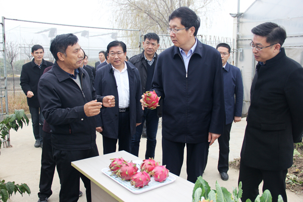 11月28日,東臺市市長王旭東,副市長孫高明帶領相關部門、鎮區負責同志來?港農場考察調研農業結構調整,?港農場有限公司黨委書記、董事長、總經理王世伯,副書記胡廣斌、副總經理張德華及有關部門負責人熱情接待并陪同調研。