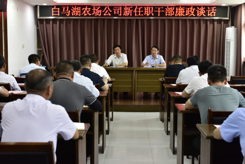 為切實落實全面從嚴治黨主體責任,提高新任職干部對黨風廉政建設重要性的認識,筑牢新任職干部廉潔自律的防線,7月2日下午,白馬湖農(nóng)場公司對40多名新提拔或崗位調(diào)整任新職干部開展集體廉政談話,黨委書記姚春華、紀委書記韓躍武分別進行談話。