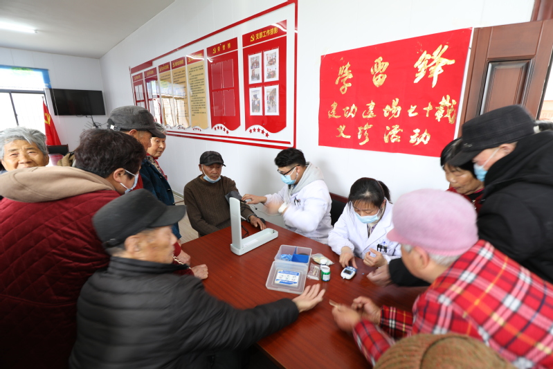 醫(yī)務(wù)人員在一旁為老年人測血壓、測血糖、查體看病、提供專業(yè)細致的醫(yī)療咨詢服務(wù),對他們的日常用藥進行了詳細講解,就慢病管理進行了悉心指導,現(xiàn)場充滿溫暖祥和的氛圍。