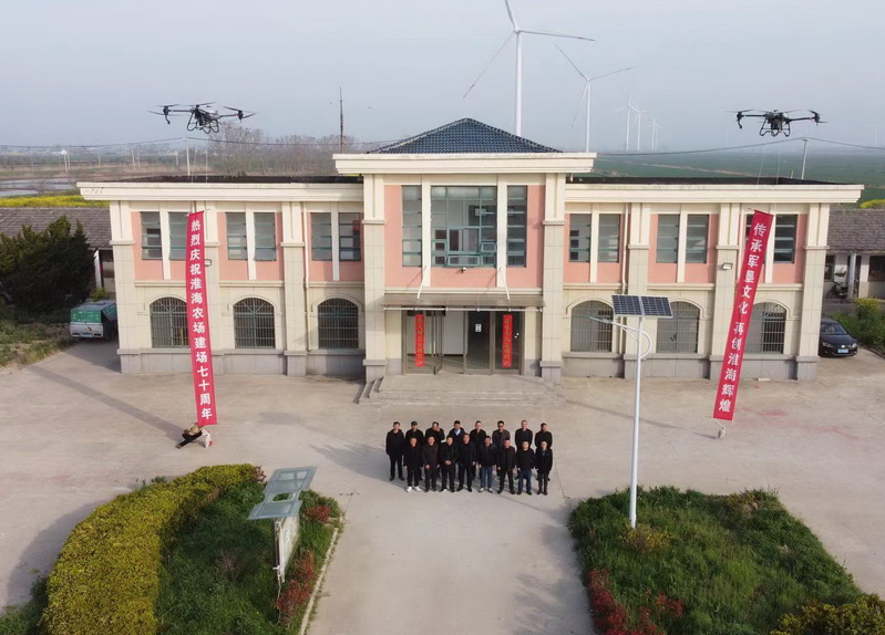 為體現(xiàn)本單位特色,七分場(chǎng)社區(qū)工會(huì)決定選擇日出時(shí)分和當(dāng)下最先進(jìn)的農(nóng)田植保機(jī)大疆T40表達(dá)對(duì)農(nóng)場(chǎng)的滿腔熱愛(ài)。為拍攝視頻,全體工作人員于10日凌晨五點(diǎn)有序排列在七分場(chǎng)海堤上等待日出,配合音樂(lè),全心投入錄制視頻,用整齊劃一的口號(hào)表達(dá)了對(duì)農(nóng)場(chǎng)的祝福。“實(shí)力淮海、創(chuàng)新淮海、和諧淮海、美麗淮海”,一聲聲響亮的口號(hào),是七分場(chǎng)全體工作人員的心聲,也代表著淮海人對(duì)農(nóng)場(chǎng)深深的愛(ài)意和祝福。在接下來(lái)的工作中,他們將堅(jiān)守崗位、嚴(yán)格履職,用實(shí)際行動(dòng)確保淮海發(fā)展勢(shì)頭持續(xù)穩(wěn)定,喜迎農(nóng)場(chǎng)成立70周年大慶。