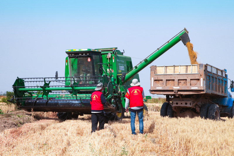 “三夏”大忙期間時間緊、任務重,隨著小麥陸續成熟,云臺未雨綢繆,黨員干部、管理人員、青年團員等組成“三夏”生產志愿服務隊,全部下沉至各大隊和生產區,通過采取有力管理措施,科學調配人員和農機力量,解決“三夏”生產問題,有效保障三夏”農業生產工作。在田間地頭,志愿者們正在指揮著收割機,安排組織統一收割,盡管烈日當頭、汗流浹背,但大家投身“三夏”的熱情卻依然不減,確保應收盡收、顆粒歸倉;在各大隊曬場,黨員志愿者們充分發揮先鋒模范作用,大家搶抓天氣晴好有利時機,拿起工具在曬場中揚麥,并根據收割進度、曬場壓力,制定了一套科學完整的烘干入庫方案,保障烘干工作“不斷環”,“三夏”農忙“不掉鏈”;“三夏”期間安全生產最重要,志愿服務隊化身安全員,提前對機架人員進行安全培訓,持續對麥田進行巡邏排險,消除各類隱患,并分成4組小分隊,夜間值班值守對秸稈禁燒情況進行檢查,保證“不點一把火,不冒一股煙”,確保安全生產無事故。