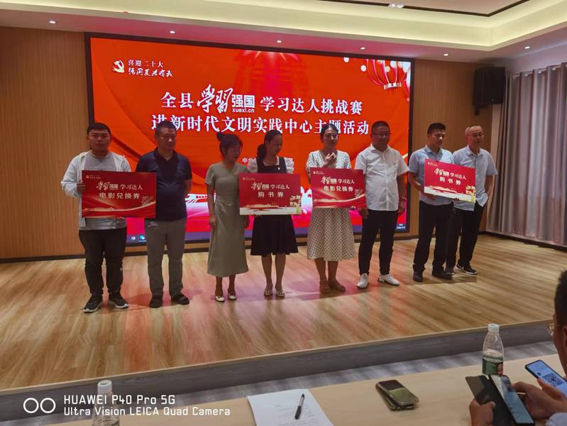 據(jù)悉,自5月15日2022江蘇“學(xué)習(xí)達(dá)人”挑戰(zhàn)賽上線以來,淮海農(nóng)場公司黨委高度重視,認(rèn)真貫徹上級部署要求,積極謀劃組織各單位開展多種形式的學(xué)習(xí)答題活動,不僅通過建立由各基層黨組織聯(lián)絡(luò)員組成的微信群,對進(jìn)群人員進(jìn)行了相關(guān)培訓(xùn),還以文件的形式,對每月排名靠前的“學(xué)習(xí)達(dá)人”選手進(jìn)行相關(guān)的獎勵(lì),在全場職工群眾中掀起了挑戰(zhàn)答題的濃厚氛圍。圖為獲獎后淮海的“學(xué)習(xí)達(dá)人”與縣域其他單位的同志同臺領(lǐng)獎。