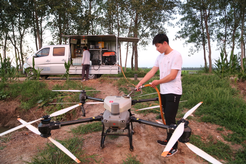 眼下正是水稻產(chǎn)量形成的關(guān)鍵時期,也是病蟲害高發(fā)時期。連日來,崗埠分公司組織農(nóng)業(yè)科、生產(chǎn)區(qū)農(nóng)技人員和大隊管理員,著眼紋枯病、稻曲病、稻縱卷葉螟、稻飛虱等高發(fā)病蟲害,深入田間展開排查統(tǒng)計,分類施策,科學(xué)開展肥水管理和綠色防控,抓好4.5萬畝水稻的穗期管理工作。“無人機(jī)夜間對水稻進(jìn)行病蟲害綜合防治作業(yè),避開白天高溫作業(yè)風(fēng)險,大大提升作業(yè)效率,一臺無人機(jī)每小時可噴灑150畝,有力加速防治進(jìn)程。”崗埠分公司農(nóng)業(yè)中心負(fù)責(zé)人表示,無人機(jī)飛防不僅作業(yè)效率快,防治效果好,減少農(nóng)藥使用量,降低農(nóng)業(yè)生產(chǎn)成本,且能大大降低勞動強(qiáng)度,一舉多得。當(dāng)前正是穗期水稻病蟲害綜合防治關(guān)鍵節(jié)點(diǎn),分公司共組織無人機(jī)40余臺,采取夜間操作,確保在規(guī)定防治時間內(nèi)完成防治任務(wù),為秋糧豐收打好基礎(chǔ)。