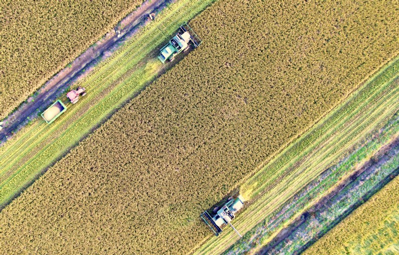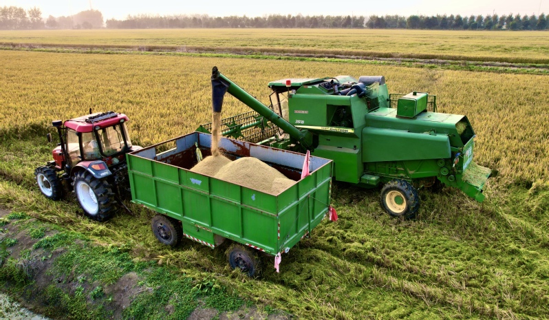 收割、脫粒、粉碎秸稈一氣呵成,色澤金黃、顆粒飽滿的水稻被裝入運糧車中送到曬場。今年“三秋”工作,復興圩分公司狠抓機械收割質(zhì)量,牢固樹立“減損就是增收”的理念,各大隊加強收割作業(yè)質(zhì)量檢查力度,強調(diào)質(zhì)量第一,確保秋糧“豐收在望”變?yōu)椤柏S收到手”。