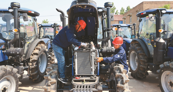 連日來(lái),連云港市海州區(qū)崗埠農(nóng)場(chǎng)農(nóng)機(jī)總站組織工作人員,對(duì)農(nóng)機(jī)及農(nóng)具進(jìn)行全面檢查、維護(hù)、修理、保養(yǎng),了解新設(shè)備的性能和操作方法,為即將到來(lái)的“三夏”大忙做好準(zhǔn)備。圖為5月23日,工作人員正在檢修一批農(nóng)機(jī)。 耿玉和 王貴珍 攝 (視覺(jué)江蘇網(wǎng)供圖)