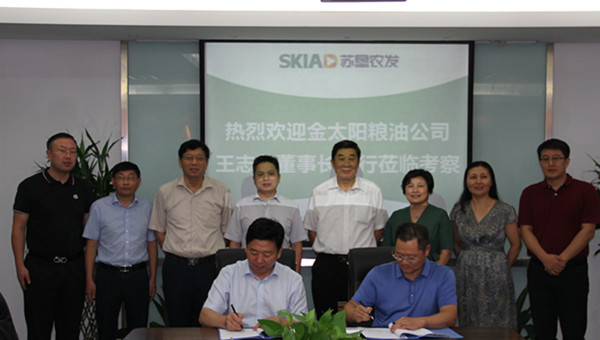 8月22日,金太陽糧油股份有限公司董事長王志榮一行到訪蘇墾農(nóng)發(fā)股份公司總部,集團(tuán)公司總經(jīng)理、蘇墾農(nóng)發(fā)股份公司董事長胡兆輝,集團(tuán)公司副總經(jīng)理仲小兵,集團(tuán)公司黨委委員、蘇墾農(nóng)發(fā)股份公司總裁蘇志富與王志