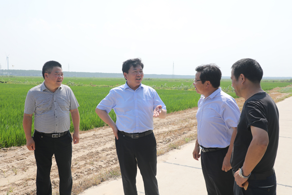 8月5日,集團公司黨委委員、蘇墾農發股份公司總裁蘇志富一行到蘇墾農發股份公司黃海分公司檢查指導工作。黃海分公司總經理賀在銳、副總經理沈進松陪同介紹情況。  蘇志富冒著酷暑深入到黃海分公司水稻生產一
