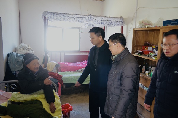 2月6日,積雪未消,集團公司黨委副書記姚準明一行來到?港農場慰問困難家庭,向他們送上集團公司黨委的親切關懷和新年問候。農場黨委書記、董事長、總經理王世伯,副書記胡廣斌,副總經理張德華,紀委