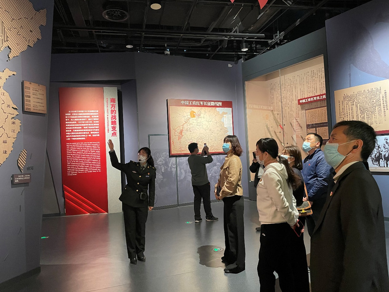 不朽的軍魂,永恒的激勵(lì)。稍作休息后,下午大家共同趕赴鹽城新四軍紀(jì)念館。緊跟解說員的步伐,大家依次參觀學(xué)習(xí)了《治國精英》《將帥風(fēng)采》《群星璀璨》《英烈千秋》四個(gè)陳展部分,隨著展館的切換,大家的心情也跟著跌宕起伏。初建時(shí)的新四軍不僅要面對敵人的兇殘殺戮,還要面對缺衣少食、武器簡陋的現(xiàn)實(shí)情況,盡管如此,新四軍憑借著鐵軍精神,堅(jiān)守在敵后戰(zhàn)場進(jìn)行艱苦卓絕的抗日斗爭,先后奪取了八灘戰(zhàn)斗、陳家港戰(zhàn)斗、阜寧戰(zhàn)役等重大勝利,沉重打擊了敵對勢力。在炮火硝煙中,新四軍將士用鮮血和生命鑄就了新四軍鐵軍精神“聽黨指揮的鐵的堅(jiān)定,報(bào)國為民的鐵的擔(dān)當(dāng),英勇頑強(qiáng)的鐵的作風(fēng),執(zhí)紀(jì)嚴(yán)明的鐵的紀(jì)律”。