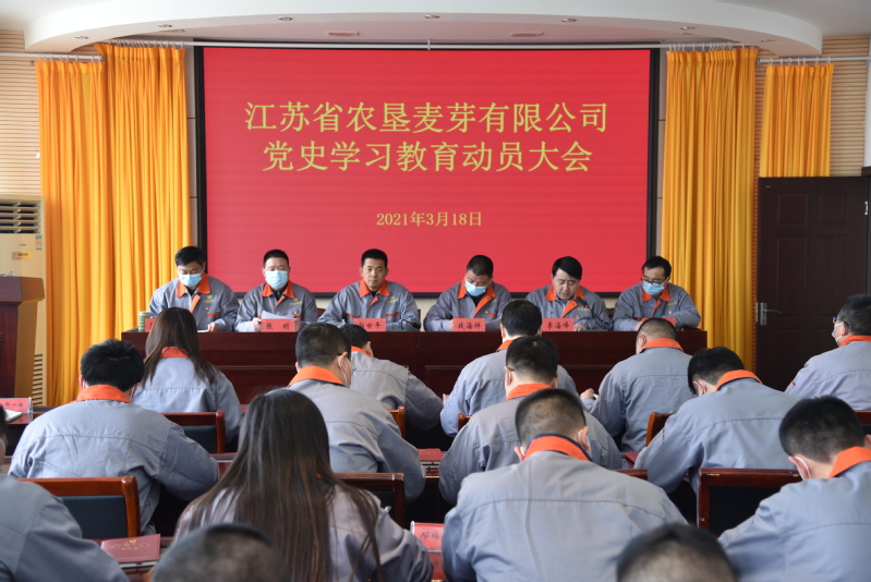 3月18日下午,蘇墾麥芽公司召開黨史學習教育動員大會,公司領導班子成員、全體黨員參加了會議。