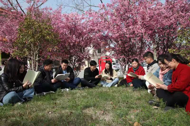 近日,云臺農場機關院內的海棠花下,陣陣讀書聲及討論聲引起了大家的注意,原來是一群年輕的黨員、入黨積極分子利用工余時間聚在海棠花下學黨史呢。只見他們圍坐著在一起,時而討論,時而沉思,時而聆聽,氣氛嚴肅而活潑。