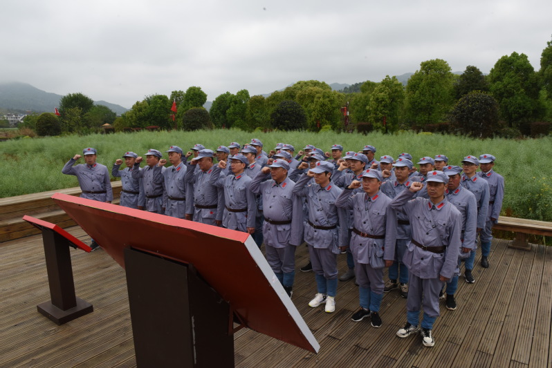 學員們在教官的帶領下,身著整潔的服裝,邁著整齊的步伐,來到了古田會議舊址,他們面對黨旗,跟隨著農場公司黨委委員李文忠一起,莊嚴地舉手右手,重溫了入黨誓詞。隨后大家在解說員的解說下,參觀了古田會議舊址。在毛主席紀念園,學員們瞻仰了毛主席雕像,向敬愛的毛主席敬獻花籃,并一起向毛主席雕像三鞠躬,深切緬懷老一輩革命家的豐功偉績。