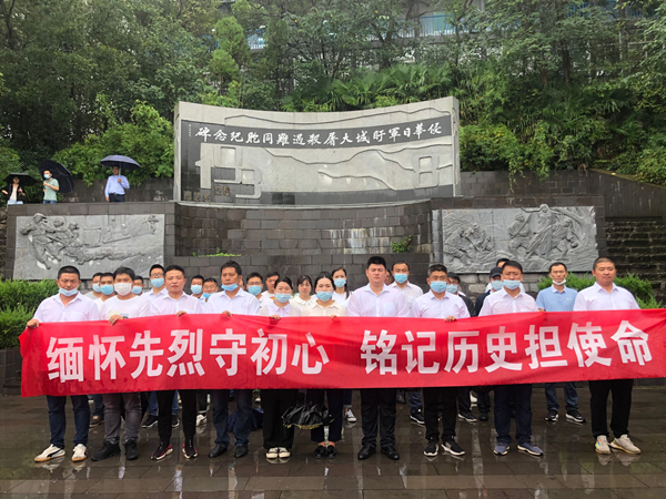 大家懷著崇敬的心情冒著小雨從山腳拾級而上,來到侵華日軍侵華日軍盱城大屠殺遇難同胞紀念碑前瞻仰,面對紀念碑集體默哀、深深鞠躬,以表達對遇難同胞們的沉痛哀思。