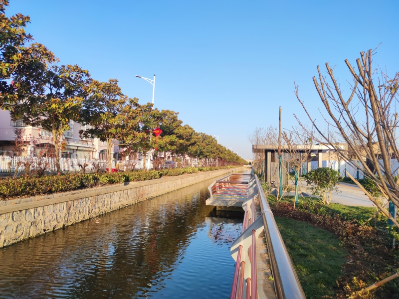 “沒想到農場也建起了健身步道,而且步道兩側還栽種了許多綠化苗木和花草,還配置了許多景觀小品、休息坐椅、親水平臺,生活在農場真是太幸福了。”居住在農場神禾路別墅區的張老漢望著河對岸清新的環境感慨地說道,“沒建這個步道前,其間要么是堆積的雜物、雞鴨棚或是種植的莊稼,破敗的狀況讓人不忍直視。現在好啦,新砌的圍墻將步道與居住區隔開,道路是彩色道路,兩邊還裝了別致的路燈,不同的樹木自成一體,大家茶余飯后就可以在步道上邊散步邊聊天了。”