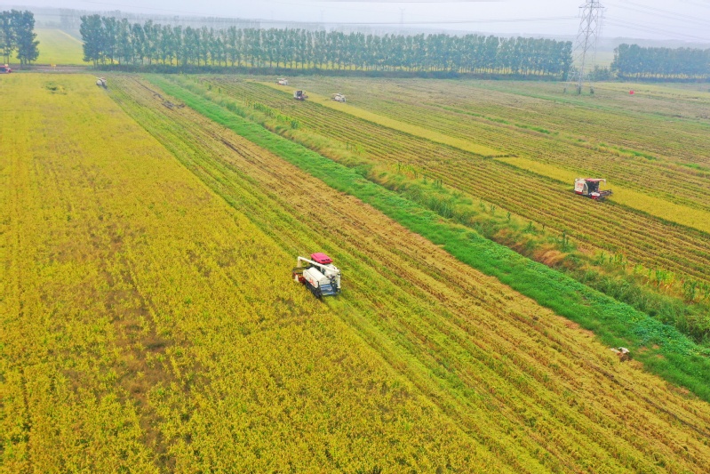 近日,隨著連日陰雨天氣的結束,蘇墾農發淮海分公司各生產區迅速轉入搶收狀態,一臺臺滿載著希望的收割機轟鳴著駛入稻田,將沉甸甸的稻穗盡數“攬入懷中”。