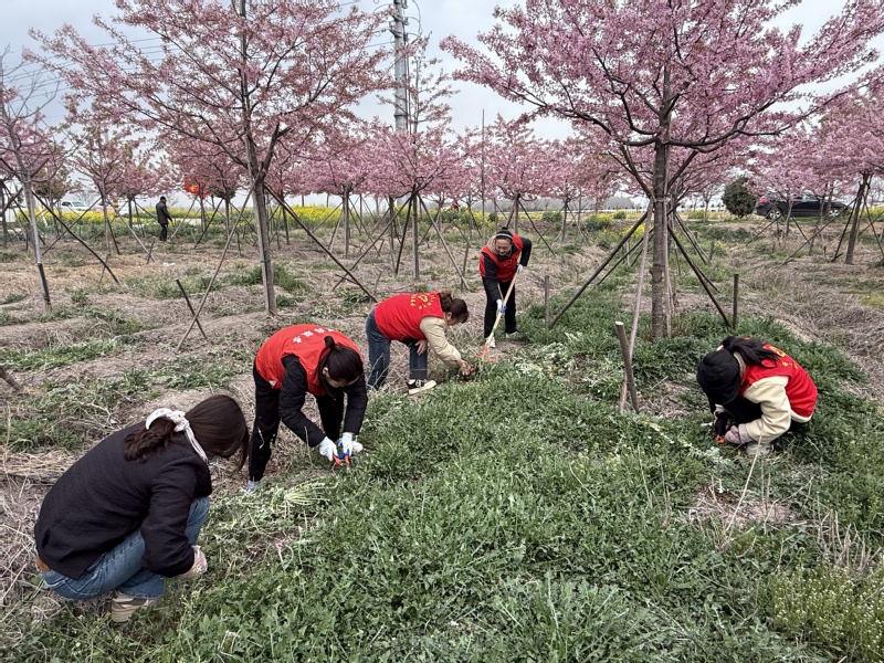 3月28日,白馬湖農(nóng)場組織開展巾幗護林園志愿活動,穿著紅色馬甲巾幗志愿者們對各種雜草進行全面清理,忙碌身影與盛開的櫻花相互交織成一道亮麗的風景線。