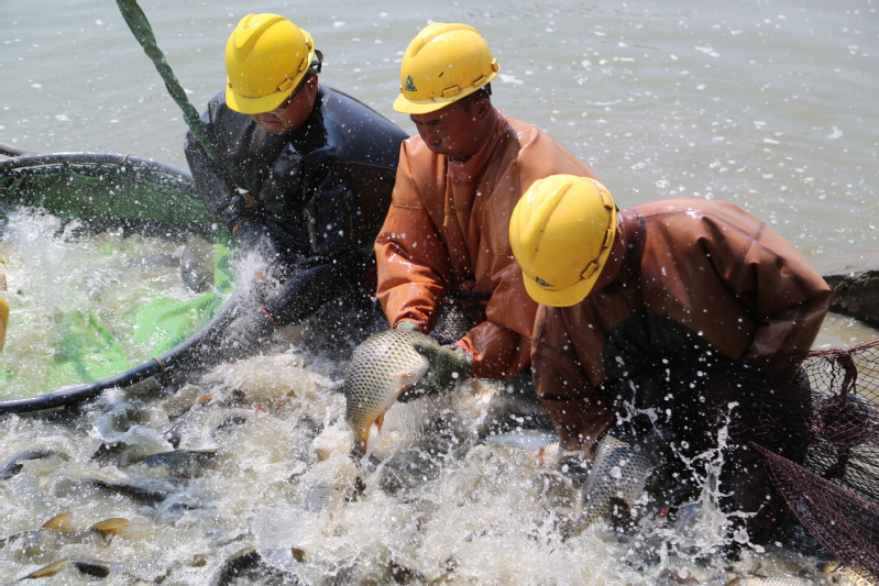入夏以來,崗埠迎來水產品捕撈銷售的黃金季節(jié)。7月4日一大早,崗埠農場公司北漁場的養(yǎng)殖塘口便響起了“起網(wǎng)”的號子聲,隨著工人們相互配合,一起發(fā)力將巨型漁網(wǎng)緩緩收攏,一條條活蹦亂跳的大魚出現(xiàn)在人們的視野中,平靜的水面上也頓時水花飛濺,大魚歡快地躍出水面,一片人歡魚躍的豐收景象。“2024年上半年,養(yǎng)殖中心緊跟市場行情,連續(xù)開展捕魚銷售作業(yè),爭取效益最大化。”在捕撈現(xiàn)場,中心負責人單懷亞一邊指揮分揀水產品,一邊介紹。養(yǎng)殖中心充分發(fā)揮“淮河牌”水產品品牌優(yōu)勢和無公害水產品養(yǎng)殖規(guī)模化、標準化、高效化的優(yōu)勢,促進水產養(yǎng)殖健康發(fā)展。今年以來,水產公司加快調整養(yǎng)殖模式,優(yōu)化養(yǎng)殖結構,采取“輪捕輪放,按需銷售”管理模式,準確把握市場行情,確保全年都有鮮魚上市。“每年這個時候是水產銷售旺季,近期北漁場和南漁場將先后進行水產捕撈銷售。我們時刻關注市場動向,爭取銷售效益最大化。”單懷亞表示,養(yǎng)殖中心積極對接市場,努力提高水產銷售效益。據(jù)悉,夏季捕撈的魚獲以鯉魚、花鰱、白鰱為主,最重的鰱魚有15斤以上。僅7月4日當天,捕撈銷售水產品28000斤,銷售額14萬元。下一步,養(yǎng)殖中心將繼續(xù)利用好水資源優(yōu)勢,結合產業(yè)發(fā)