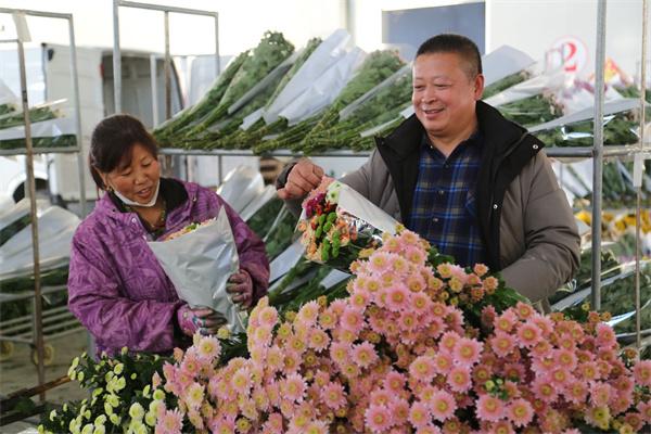 走進富民農(nóng)業(yè)科技園14號大棚,雛菊鮮切花成熟上市,工人們正在溫室大棚里挑選裁切雛菊花。在包裝車間內(nèi),工人們正在整理數(shù)以萬計的雛菊,去掉多余枝葉,整理包裝成一束束精美的花束,不遠(yuǎn)處的三大排貨架上,全部都是五顏六色的雛菊?!拔覀儓@區(qū)種植了5個大棚的雛菊,約二三十個品種共15萬枝,現(xiàn)在相繼進入采摘期。現(xiàn)在園區(qū)一邊采摘雛菊,一邊忙著整理包裝,準(zhǔn)備供應(yīng)山東客商?!眻@區(qū)副主任魏建東介紹說,剛上市的雛菊每天采摘量在2000枝以上,往后會越來越多,不斷滿足市場需求。隨著社會經(jīng)濟的發(fā)展和人們生活水平的提高,鮮花逐漸成為更多人裝扮生活的必需品,消費理念的改善促使鮮切花品種結(jié)構(gòu)日趨豐富。其中,雛菊以其色彩繁多、花型多樣、瓶插期長、耐運輸、清新動人的花姿,受到廣大消費者喜愛追捧。崗埠農(nóng)場公司緊盯市場需求,大力發(fā)展多元鮮切花種植,引進新品種、新技術(shù),積極探索發(fā)展新路徑新模式,走特色鮮花發(fā)展之路。“當(dāng)前,我們園區(qū)大力發(fā)展鮮切花產(chǎn)業(yè),從種植、包裝、銷售逐步升級,進一步轉(zhuǎn)變經(jīng)營模式,提高產(chǎn)業(yè)效能。在提高集體經(jīng)濟效益的同時,發(fā)揮示范帶頭作用,為花農(nóng)的種植經(jīng)營創(chuàng)造更有利條件,在增加場域就業(yè)上做文章,爭取實現(xiàn)社會效益的最大